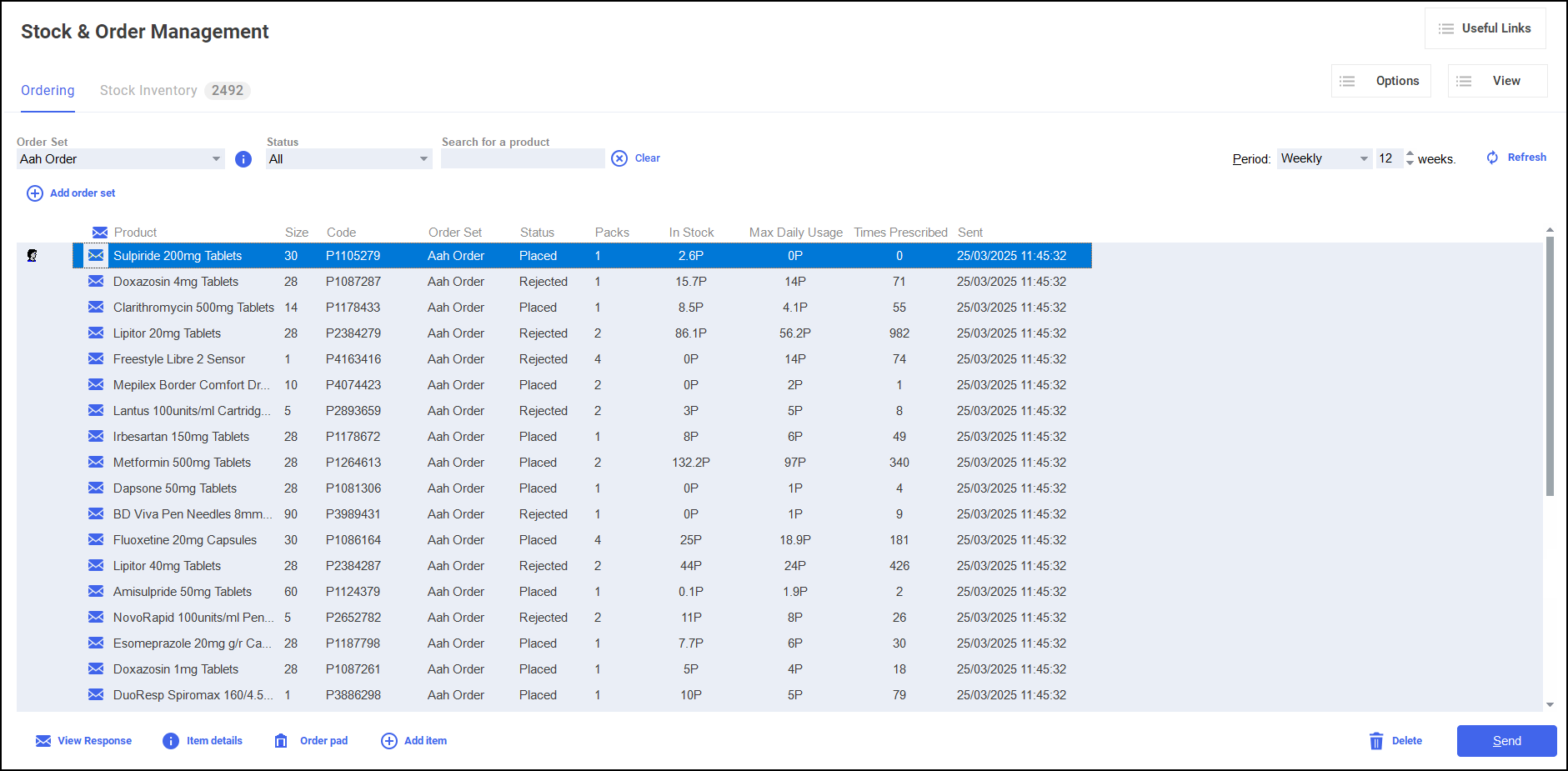 Select the item on the Stock & Order Management - Ordering screen and then press Ctrl + PgUp on your keyboard to increase the order or press Ctrl + PgDn on your keyboard to decrease the order.