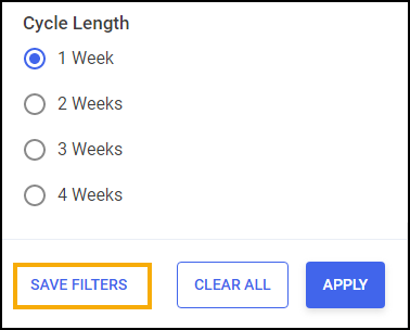 You can save a filter, or a range of filters for regular use if required. To save a set of filters: