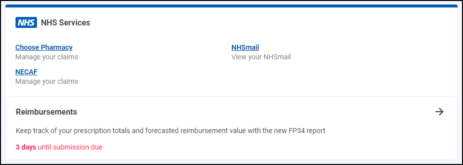 The NHS Services tile allows you to access a variety of NHS services: