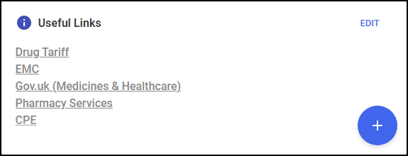 The Useful Links tile, managed by your pharmacy, displays links to websites you use. You can add, edit, delete and re-order links as required.