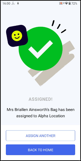 To assign another bag, select ASSIGN ANOTHER