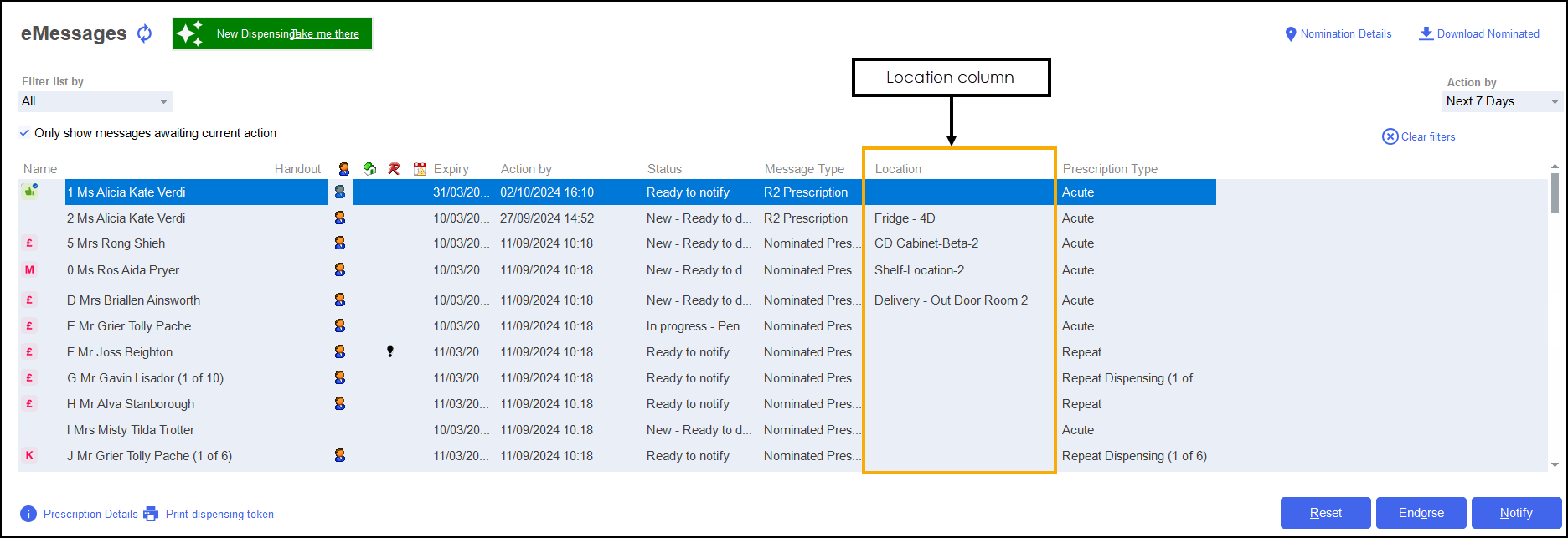 When the prescription is bagged up and ready to go on a shelf you can now assign it a location at the pharmacy.