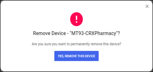 To remove devices that have been registered to Pharmacy Manager: