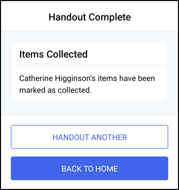 The Handout Complete screen displays, either select HANDOUT ANOTHER