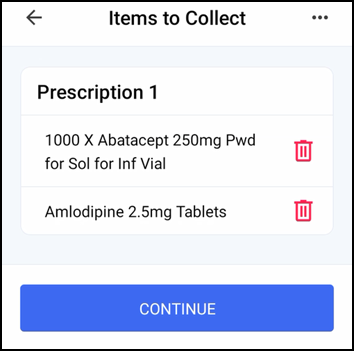 It is at this point that you can remove an item, either to be collected later or if the patient no longer wants it.
