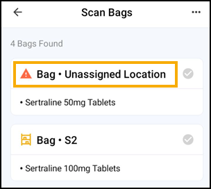 Training Tip - If a bag is not yet assigned a location it displays as Bag•Unassigned Location.