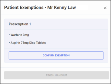 3. If an Electronic Prescription Service (EPS) prescription is being handed out the Patient Exemptions screen displays: