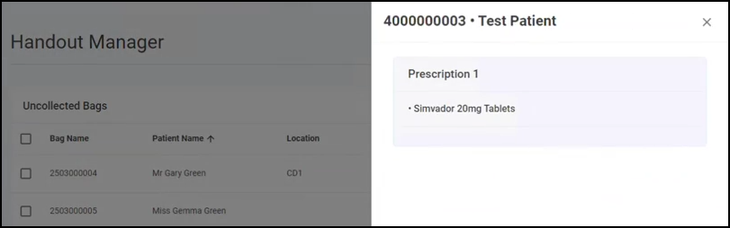 When a bag is collected, either by Handout Manager or in Pharmacy Manager, it is removed from this screen.