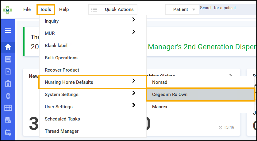 From the Dashboard, select Tools - Nursing Home Details.