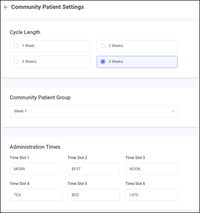 Administration Times - Select to set or update the administration times for the patient.