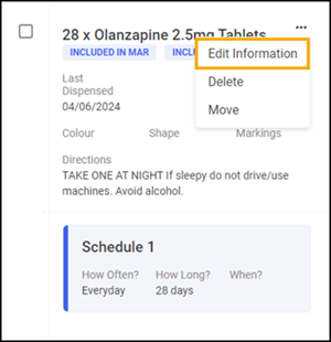 For more information on editing medication schedules, see Editing a Medication Schedule. -