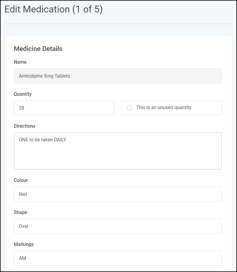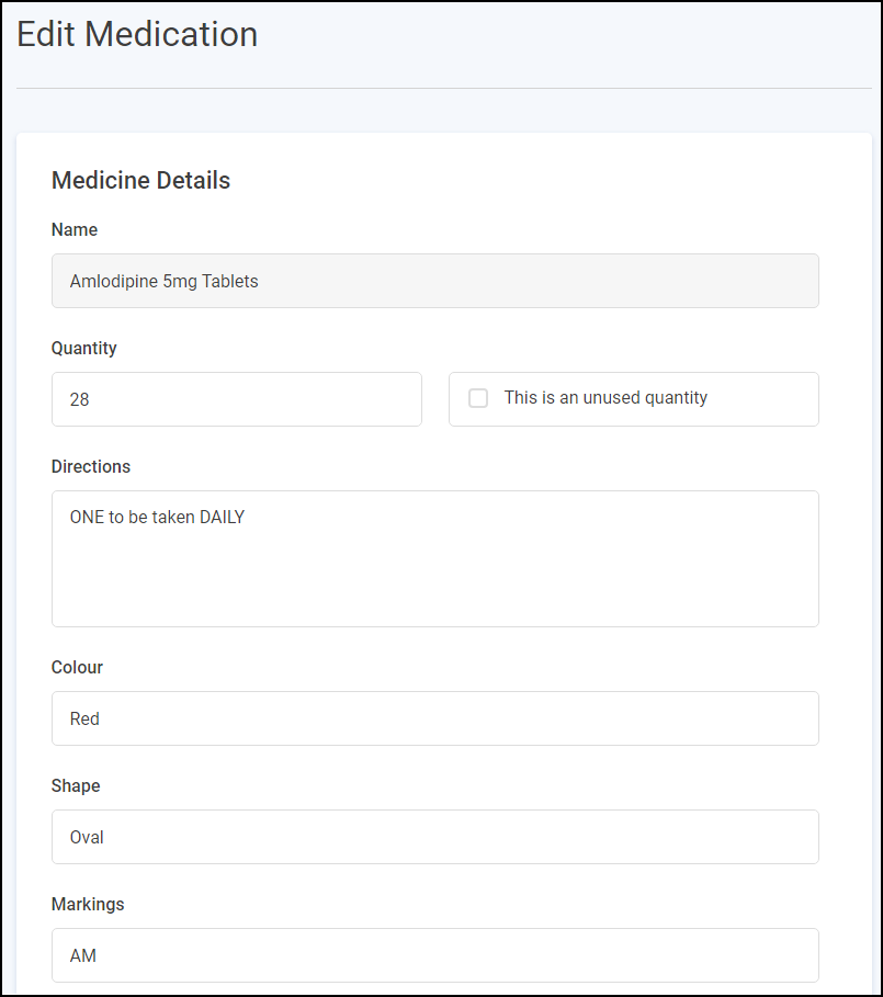 Important - Please note you cannot change the Name of the medication item.-