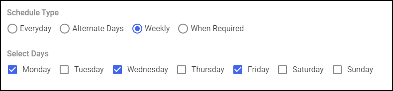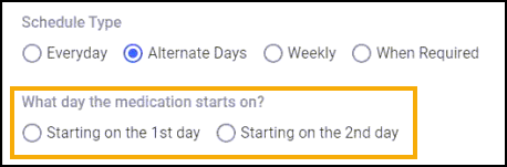 Alternate Days - Select to start on either the 1st or the 2nd day of the calendar month.