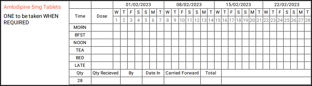 When Required - When Required dosages do not display a dose on the Medication Administration Record (MAR) chart: