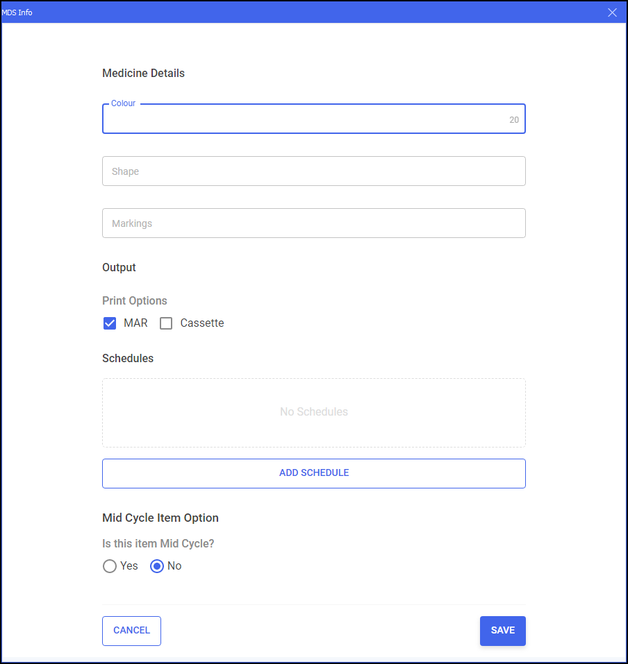 For more information on adding or editing medication schedules, see Adding a Monitored Dosage System (MDS) Medication Schedule and Editing a Medication Schedule. -