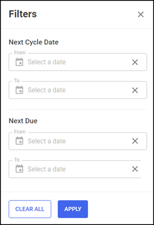Note - You must have printed a MAR chart or Cassette sheet to filter by the Next Cycle Date. -