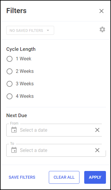 to apply the new filters.Note - Select CLEAR ALL to clear all the selected filters.