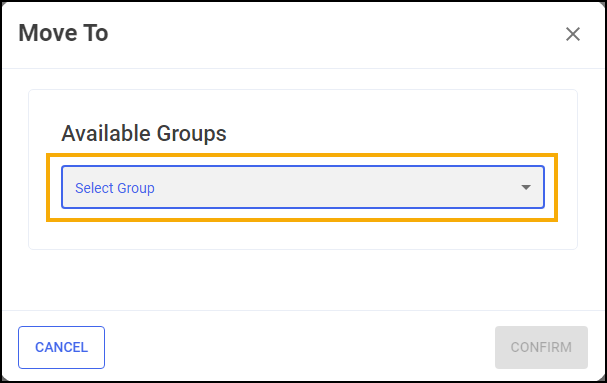 The Move To screen displays, select the group to move the item to from Select Group: