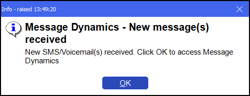 The Message Dynamics - New message(s) received screen displays. Select OK: