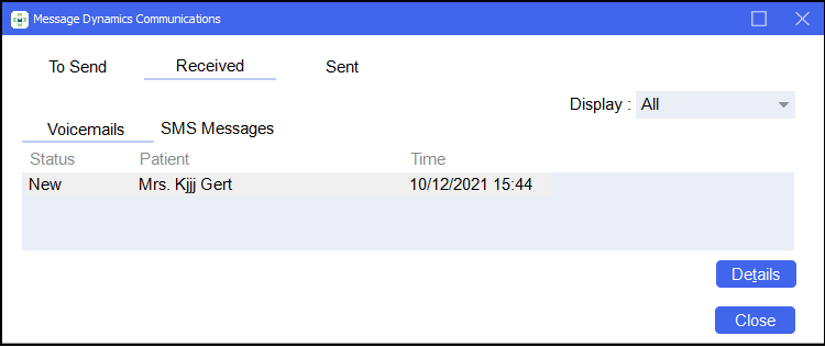 From Message Dynamics Communication, select Received and then select Voicemails. All received Voicemails display: