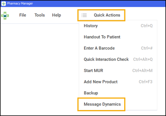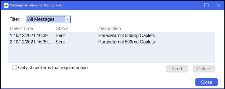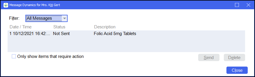 to display the Message Dynamics screen. This displays details of the prescribed medication: