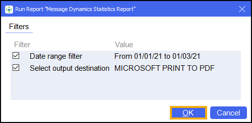 - Select Message Dynamics Statistics Report from the list of available reports and select Run