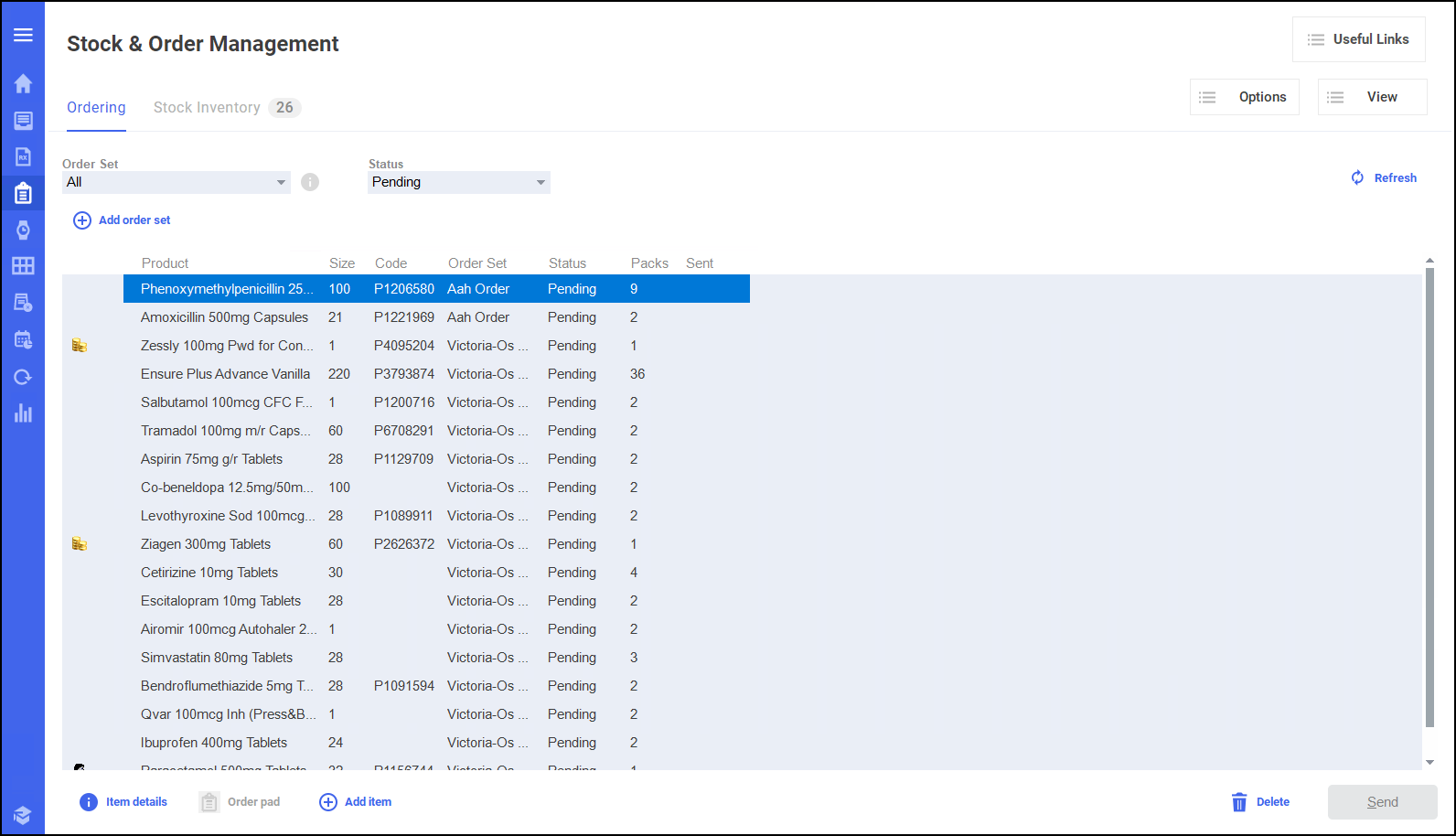 See below for a list of keyboard shortcuts for use on the Ordering screen: