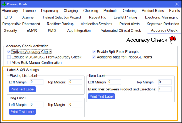 .Important - No additional label formatting is possible with Accuracy Check enabled, therefore the label defaults to the Pharmacy Manager standard. -