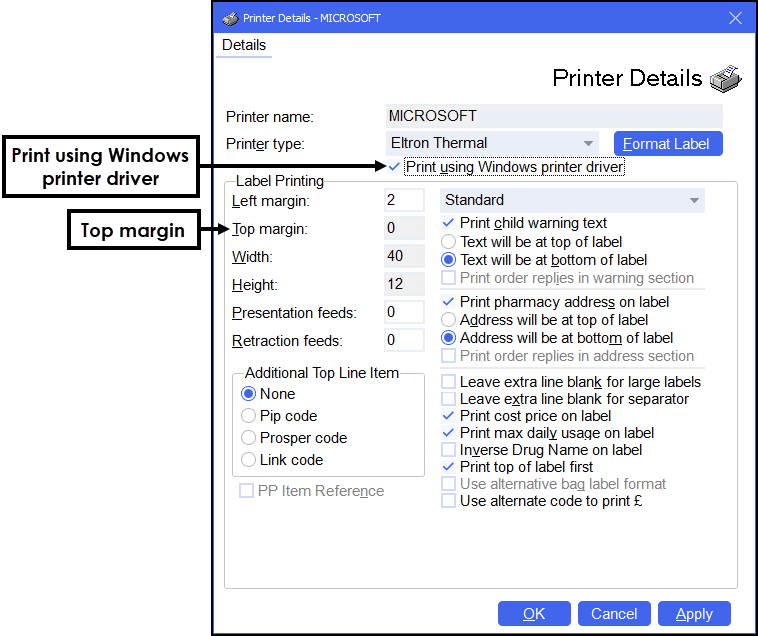 Tick Print using Windows printer driver and then select Apply