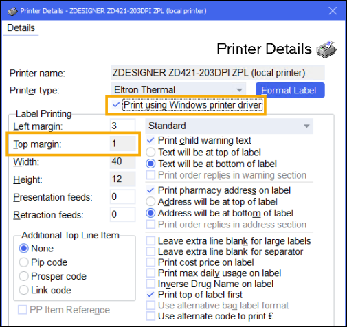 Due to the addition of the QR codes and using the Windows Printer Driver to print your labels, you may need to adjust your label printer configuration.