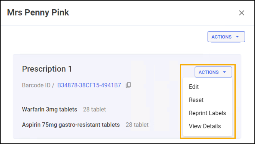 next to a patient to view each individual prescription within the prescription grouping, from here you have the following options: