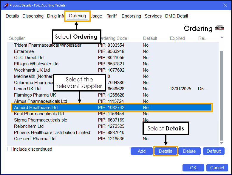 Select the supplier and then select Details