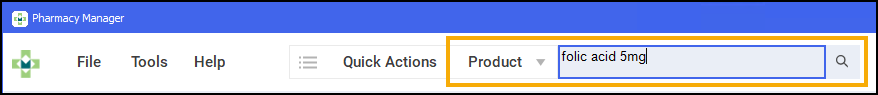From the Pharmacy Manager Search bar select the drop-down arrow and select Product.