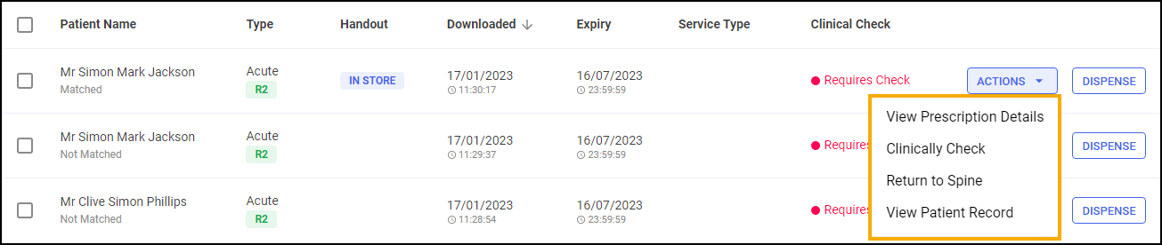 - DISPENSE - Dispense the individual prescription, see Dispensing New Prescriptions (England) for details.