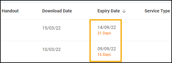 Prescriptions that are due to expire in the next 7-21 days display the number of days in amber.