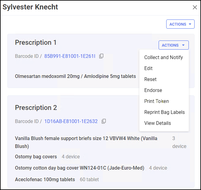 Select VIEW DETAILS next to a patient to view each individual prescription within the prescription grouping, from here you have the following options: