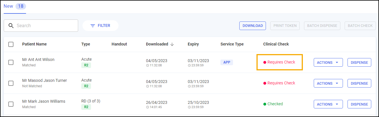You may wish to reset the clinical check on a new prescription. This resets the status to Requires Check and clears the patient's history of any acknowledgements recorded during the clinical check.