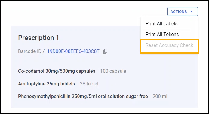 From the In Progress screen, select VIEW DETAILS next to the required grouping and then select ACTIONS - Reset Accuracy Check.