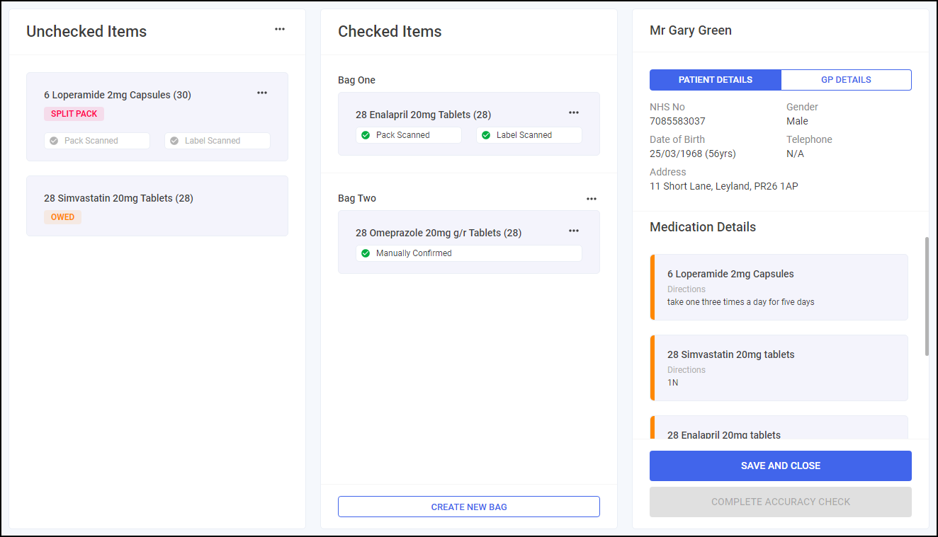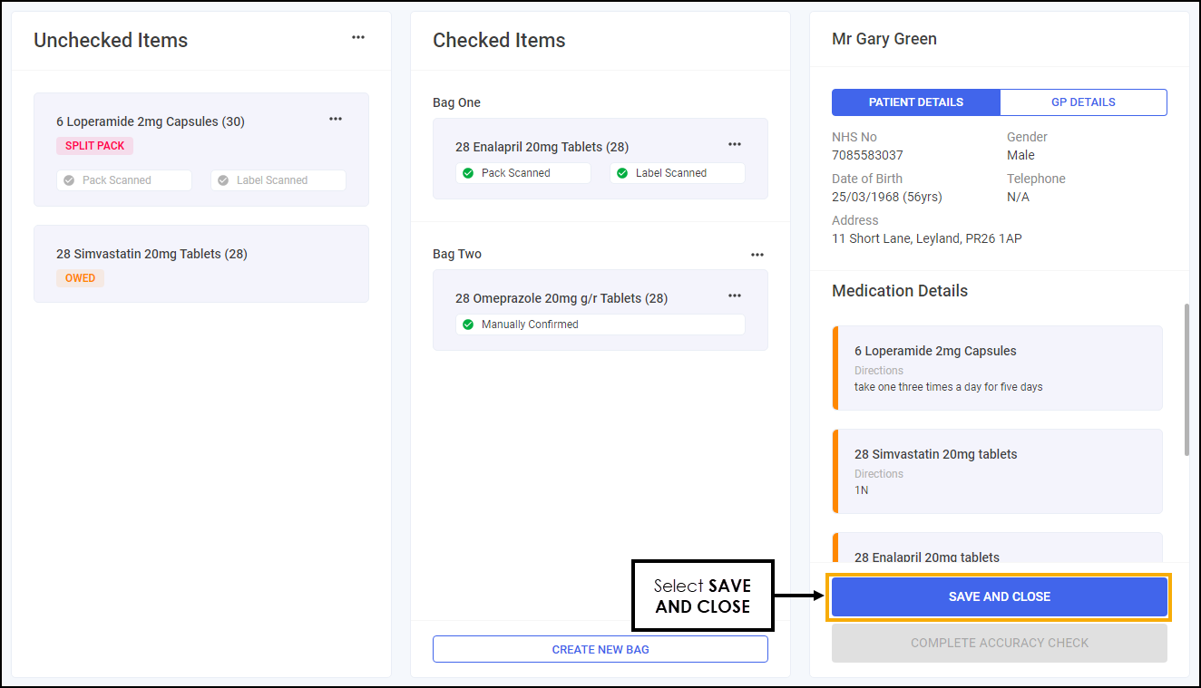 From the Accuracy Check screen, and with at least one item in Checked Items, select SAVE AND CLOSE