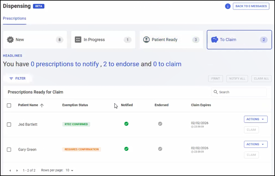 We have introduced a Prescriptions - To Claim screen making it easier to identify and manage electronic prescriptions that have been marked as collected and are now ready to claim. You can mark prescriptions as claimed individually or in bulk from the Prescriptions - To Claim screen.