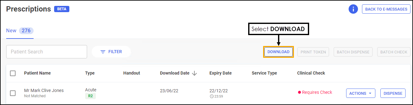 If required, it is possible to download nominated prescriptions from the NHS Spine on the Prescriptions - New screen: