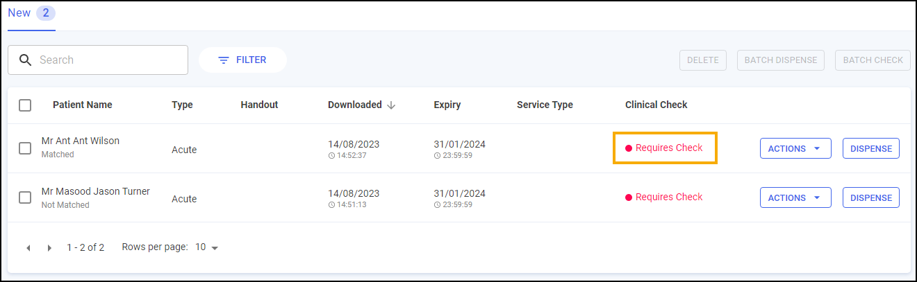 You may wish to reset the clinical check on a new prescription. This resets the status to Requires Check and clears the patient's history of any acknowledgements recorded during the clinical check.