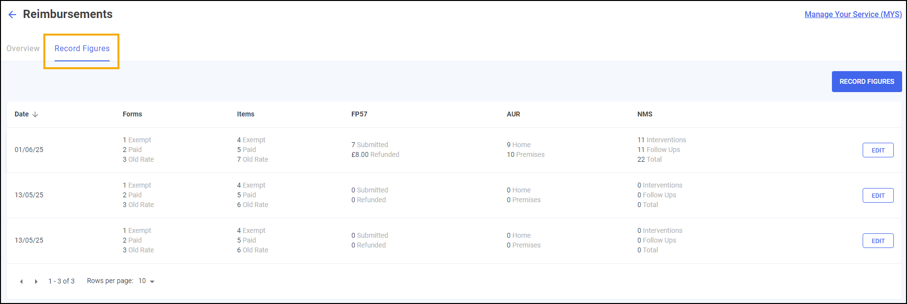 From the Reimbursements screen select the Record Figures tab: