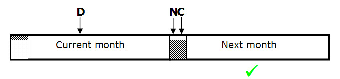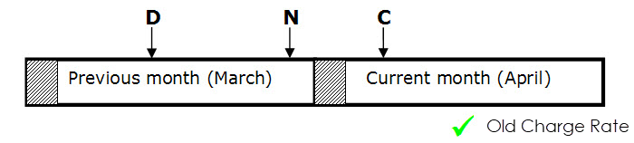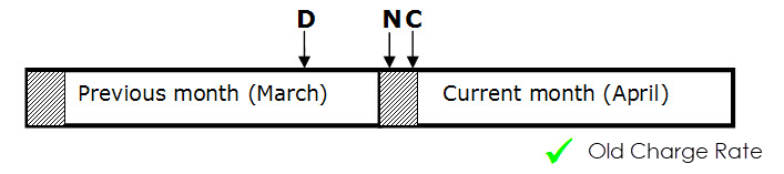 A prescription is dispensed (D) in March but notified (N) and claimed (C) in first five days of April will be included in the April payment at the old rate: