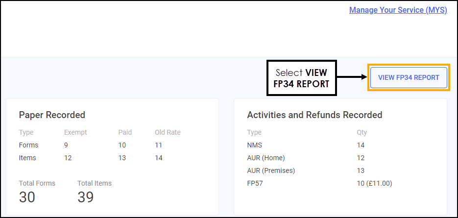 Disclaimer - The FP34 values are calculated using the EPS items claimed for and the paper prescriptions labelled within Pharmacy Manager over the set date range. -