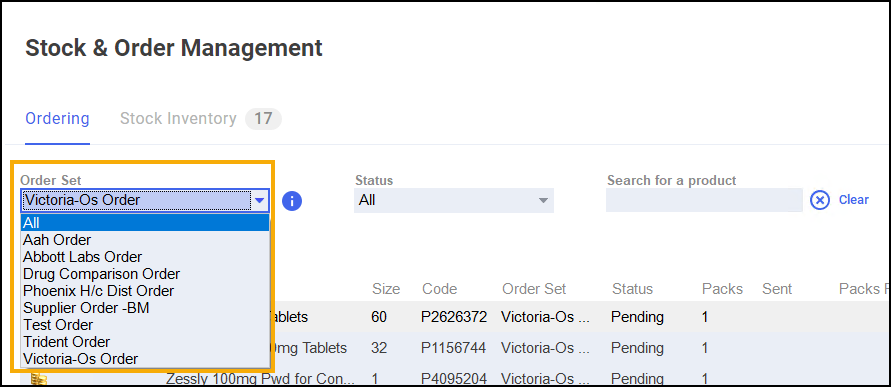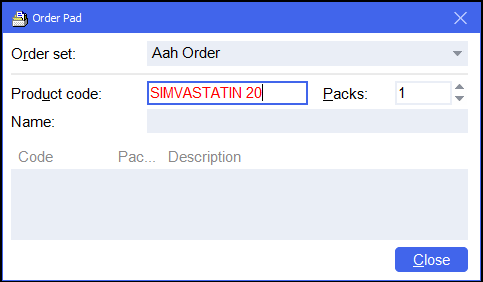and the Order Pad screen displays. Enter the Product code, for example, SIMVASTATIN 20, and press Enter on your keyboard: