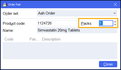 The Order Pad screen displays. Enter the number of Packs required and press Enter on your keyboard: