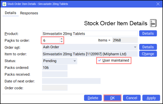 From the select Stock & Ordering
