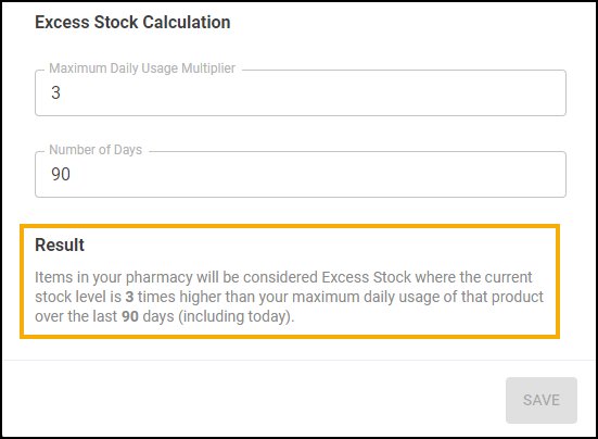 From Maximum Daily Usage Multiplier set how many times higher than your maximum daily usage of the product, the system will deem as excess stock.