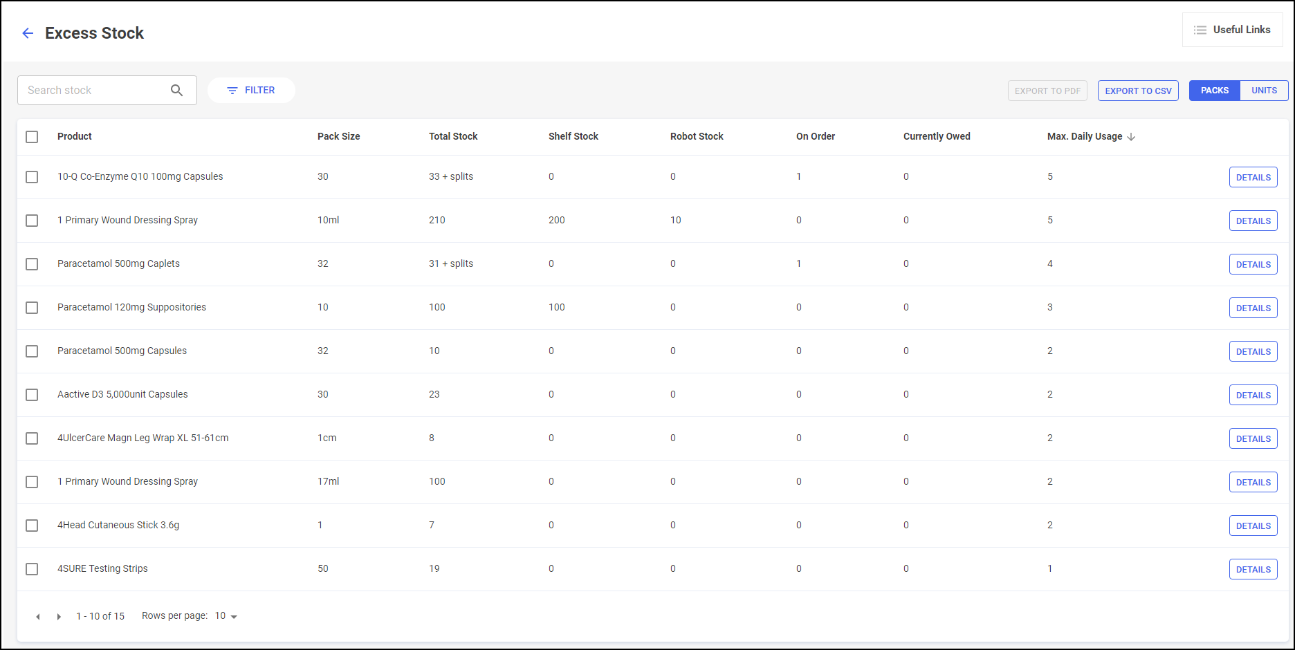 Max. Daily Usage – The maximum amount of the medication item that you have ever dispensed in a day.